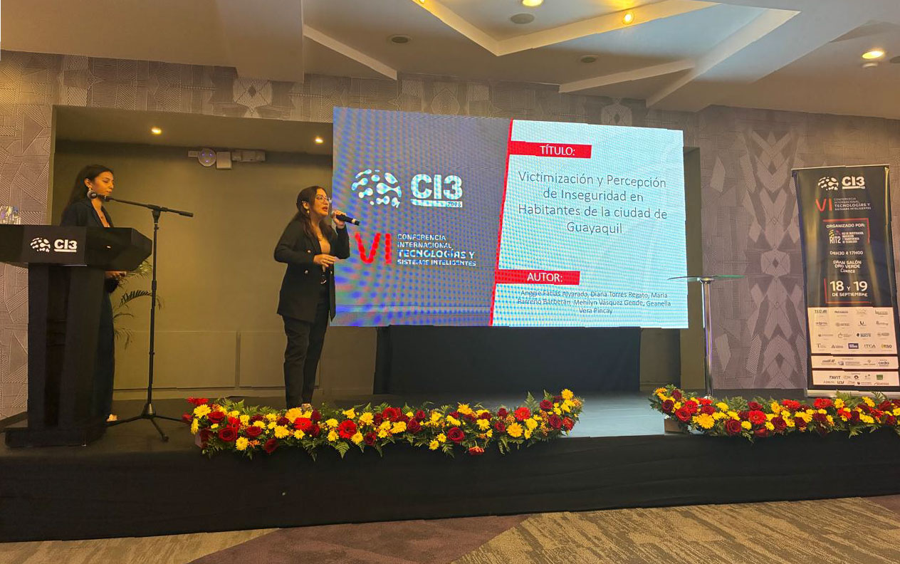 En esta edición del congreso, nuestras estudiantes presentaron la ponencia titulada “Victimización y percepción de inseguridad en habitantes de la ciudad de Guayaquil”, destacándose por su enfoque analítico y riguroso. La investigación abordó aspectos clave relacionados con la seguridad urbana, la percepción ciudadana y la importancia de generar estrategias basadas en evidencia para mejorar la calidad de vida de los habitantes.